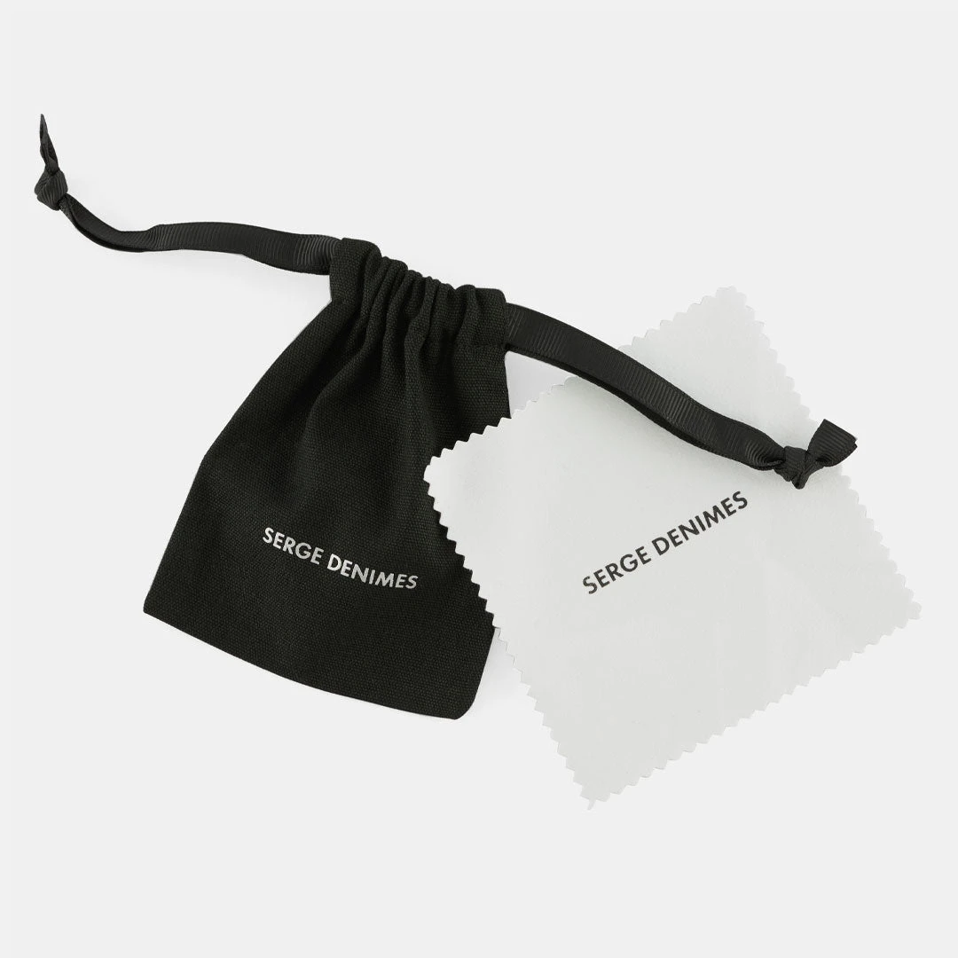 Every product comes in a recyclable pouch. Our pouches are made from 100% cotton with cotton drawstrings and are completely plastic free & recyclable. Silver products (excluding Rhodium plated styles) naturally age over time, so they also come with a cleaning cloth, which can be used to polish your product.